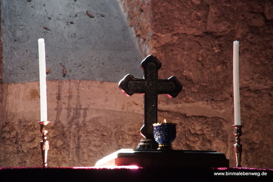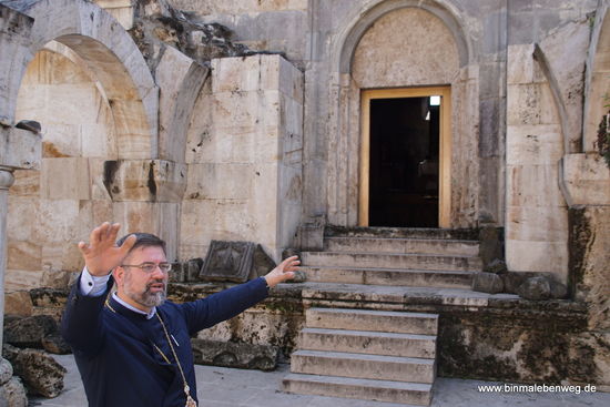 Wir kommen dort mit einem deutschsprachigen Priester ins Gespräch, der regelmäßig in Deutschland ist und dort auch Gottesdienste für die armenischen Gläubigen hält. Die armeische Kirche hat ein Gotteshaus in Köln, es werden aber auch Gottesdienste in anderen Städten gehalten, dort in katholischen und evangelischen Kirchen.