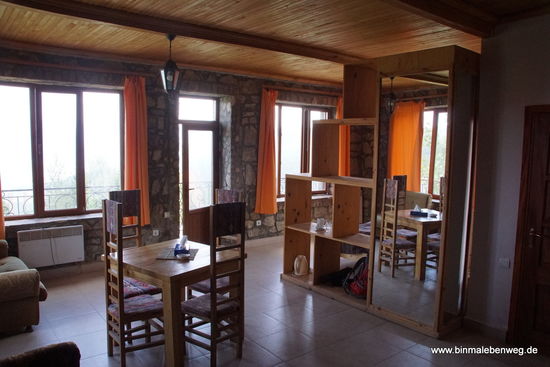 Hier wohnen wir wieder in Hütten, diesmal von der luxuriösen Variante, die sich von der Rezeption und dem Restaurant den Hang nach oben ziehen. Neben einem tollen Blick ins Tal und die Berge kann man da oben wandern, reiten, ziplinen, zorben usw.