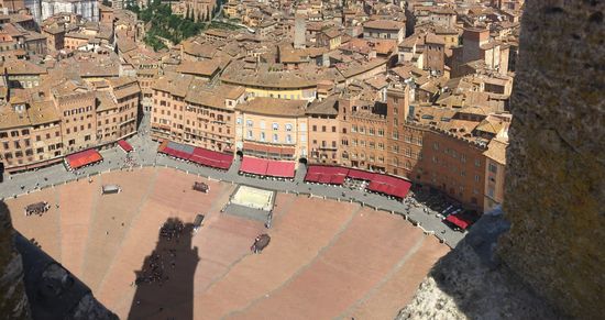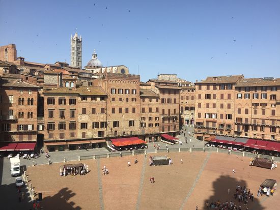 1. Highlight war die Piazza Il Campo mitten in der Altstadt. Sehr beeindruckend das Rathaus Palazzo Pubblico mit dem 102 m hohen Glockenturm Torre del Mangia, der natürlich auch bestiegen werden sollte. Von oben hatte man einen herrlichen Ausblick auf die Piazza und die umliegende Altstadt.