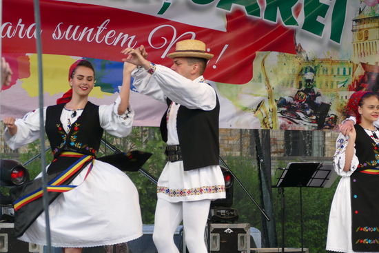 Nachdem wir uns mit einer Riesen-Portion Hackfleisch-Rollen, Grillkäse und Fleischspieß gestärkt haben, bekommen wir noch diverse Folklore-Aufführungen zu sehen.