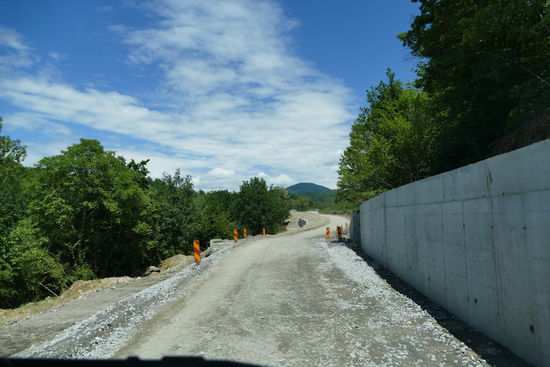 Die Fernstraße entwickelt sich zunächst zu einem holprigen Flickenteppich, dann zur Schotterstrecke, dazwischen riesige Schlaglöcher, Baustellenabschnitte, mal ist eine Spur frisch geteert, dann die andere.