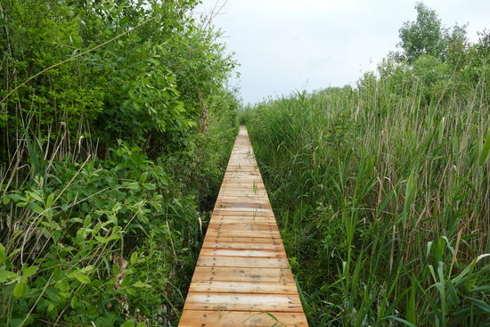 Wir wandern durch diese Landschaft aus Schilf und Teichen, können seltene Vögel sowie eine große Herde Wasserbüffel beobachten. Rund zwei Stunden marschieren wir vorbei an Beobachtungsstationen. Auch eine Schmalspur-Bahn fährt durch diese eindrückliche Landschaft. Und das Beste: wir sind allein auf weiter Flur.