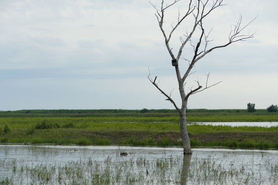 Also wird in aller Ruhe gefrühstückt und wir fahren anschließend mit dem Mumin nach Hortobágy Halasto. Hier wechselt das Bild der riesigen Grassteppe der Puszta. Wasserflächen und Feuchtbiotope gehören ebenfalls zum Nationalpark, in dem wir uns hier befinden.