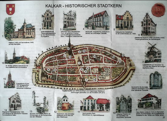 Mehr als jede andere Stadt am Niederrhein vermag Kalkar Städtebau, Ar-chitektur und Kunst des Mittelalters als Einheit zu präsentieren. Kalkar wurde von Graf Dietrich VI. von Kleve am 20. Oktober 1230 auf einer Ward, einer am nördlichen Fuß des Monreberges vom Rhein angeschwemmten Sandbank, gegründet. Es ist keine in vielen Jahrhunderten gewachsene Siedlung, sondern eine von Anfang an planmäßig angelegte Stadt. Sie erhielt schon 1242 nach kurzer Bauzeit die Stadtrechte von den Klever Grafen verliehen. In dem sumpfigen Gelände ließ die Stadt mit Wassergräben versehen gut verteidigen .