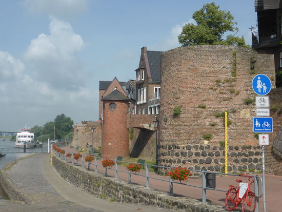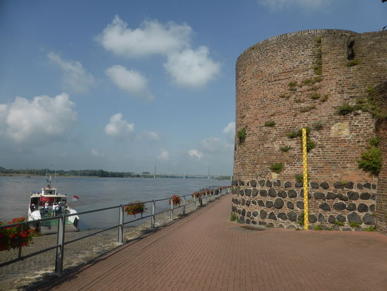 Offenbar die hohen Kosten des Stadtmauerbaues scheuend, begannen die Stadtbürger erst 60-70 Jahre nach der Stadterhebung 1228 ihre Rheinfront mit einer steinernen Mauer zu befestigen. Noch während dieser Baumaßnahme fassten sie den Entschluss, die einst dem Rhein direkt zugewandte Südostecke nachträglich mit einem Rundturm zu bewehren. Dieser Wehrturrn wird schon 1329 als Rundeyl-Rondell erwähnt. Auch in anderen Städten wie Kalkar. (1354 rundeil) und Kleve (1369 rondeel) existierten seinerzeit Rondelle. Im damaligen Sprachgebrauch waren dies freilich noch keine Artilleriebauten, sondern vielmehr bullige, bastionsartige Rundtürme. Erst im 15. Jahrhundert wandelten sich diese zu speziellen Wehrbaüten für Feuerwaffen.