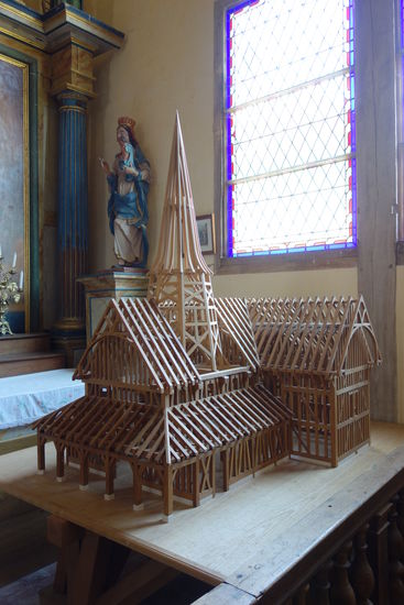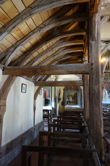 There already existed then a church at that time. However the actual church was built at the end of the 15* century, a tile from its roof, conserved in the Museum of Troyes, shows the date of 1472 (about 40 years after Joan of Arc), wich makes this one of the oldest church in wood still existing in Champagne.