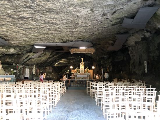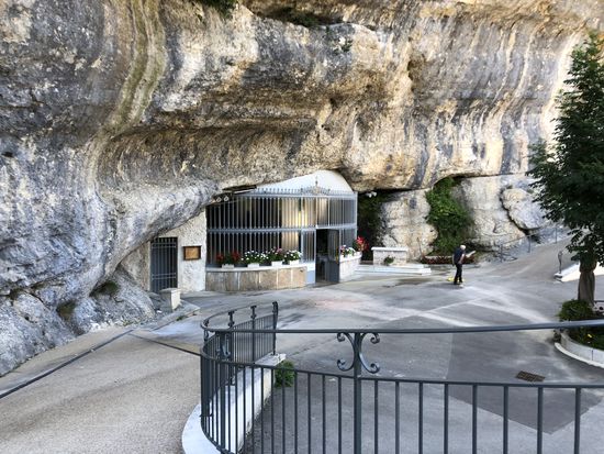 Es geht Richtung Lons-le-Saunir. Immer wieder sehen wir den Doubs und landen bei einer Grotte de silence. Jetzt was trinken, Pi.., und Pause - aber stopp - wir haben noch keine Euro und eine EC-Karte nehmen Sie nicht aber das WC ist wenigstens Gratis. Das zeigt uns, Bargeld ist noch nimmer gefragt, vor allem wo die heiligen zu Hause sind.
