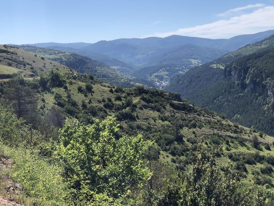Wir haben unseren Aufenthalt in Issor storniert und haben so viel mehr Zeit und können den Berg von Remco besuchen. Von Mende via Balsiège nach Saint-Enimie, via Meyrueis nach Mont Aigoual. Tolle Strasse, jede Menge Tiere (Esel, Pferde, Hühner und ein lebensmüdes Reh (hoppst einfach einige Meter vor Rider über die Strasse), Schafe und Hunde. Im Gegensatz zu unserer Amerika Reise sind diese Tiere alle am Leben. In Luanes kommen wir Windrädern so nah, das wir den ohrenbetäubenden Lärm das erste mal live erleben.