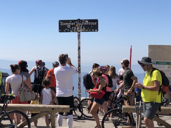 Es geht los Richtung Mt. Ventoux, dem „Velohimmel“. Der Weg ist herrlich und der Gipfel beeindruckend - und erst die vielen Velofahrer, die sich diesen Hügel hinauf gequält haben. Die Abfahrt wird relaxt, nicht so viele Velofahrer die uns durch ihre halsbrecherische Fahrweise ängstigen.