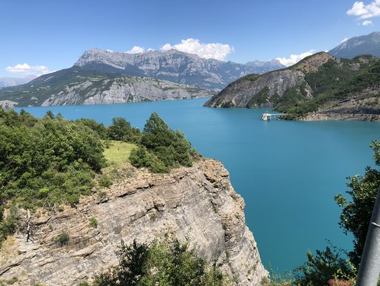 Nun geht es durch Lavendel Felder, die die Sinne betören, mit den Farben und vor allem mit dem intensiven Duft. Auch die Lindenblüten verströhmen ihr wunderbares Parfüm, wir fahren durch parfümierte Landschaft. In Los Omergues gibt es endlich einen Halt mit trinken und essen. Es ist unglaublich heiss mit 35 Grad. Weiter führt uns die Reise nach Brèziers und Rousset an den grossen See. Was gäbe ich dafür in die kühlen Wellen einzutauchen!