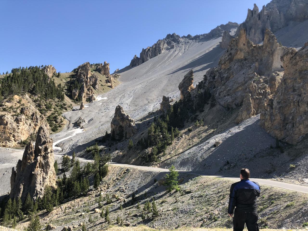 Wir haben alle Pässe sicher mehr als einmal befahren, doch es ist immer wieder ein Erlebnis. Wir fahren über Col du Izoard, Col du Lautared, Col du Glandon und über den Col de Croix de fer und den Telegraph. Der Höhepunkt ist der Col du Galibier, Riders Lieblingspass. Via Briacon geht es zurück nach Guillestre. Aber was besonder ist an diesem Tag, woher kommen all die Harley’s, vor allem die Electra Glides? Da brät mir doch einer einen Storch, das ist doch nicht normal für diese Gegend. Rider sitzt stolz wie Bolle auf seinem Geburtstagsgeschenk und kann gar nicht mehr aufhören stolz zu grüssen. Die werden doch nicht alle wegen ihm hier sein? In Valloire ist das Harley Treffen Grenoble. Ja so! Jetzt ist alles klar! Da gibt es gleich ein neues Gilet für Rider und ab geht es ins Hotel. Klar sind wir wieder zu spät für das Fussballspiel! Douchen und diesmal mit dem Töff ins Dorf. In der Bar werden wir bereits mit Handschlag begrüsst und gefragt: un Grim? (Grimmbergen Bier).