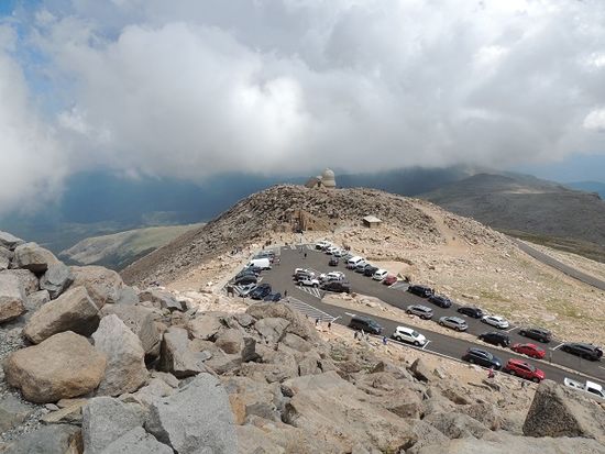 Oben angekommen weht ein kalter Wind. Die Bergstation ist zwar erreicht, doch die Bergspitze muss noch erklommen werden. Das heißt, die letzten 100m muss man über Geröll nach oben klettern. Von dort, 4400m hoch, schaut man auf die anderen Berge drauf und man steht mitten in den Wolken, die schnell an einem vorbeiziehen. Ein wirklich aufregendes Ereignis.