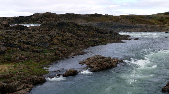 Unser erstes Ziel für die Zwischenübernachtung war ein Gästehaus in Borgarnes. 118 km - mehr wollten wir am Anreisetag nicht mehr fahren. Die Landschaft war noch nicht so berauschend, auch den Ort selbst habe ich jetzt nicht unbedingt in so guter Erinnerung. Das mag am regnerischen Wetter gelegen haben, oder an der Zimmerwirtin, die uns direkt mit den Worten „Money, Money“ empfing. Den ersten Stock in der Unterkunft hatten wir fast für uns alleine, das Zimmer war sehr überladen, was nicht jedermanns Geschmack ist, die Gemeinschaftsküche hingegen sehr groß und hervorragend ausgestattet, die Aussicht direkt auf das Wasser schön, nur das Frühstück am nächsten Morgen war das armseligste unserer ganzen Rundreise. Gut, dass wir direkt nach unserer Ankunft, nachdem wir die Wirtin mit unserem „Money“ befriedigt hatten, im nahegelegenen Restaurant speisen konnten.