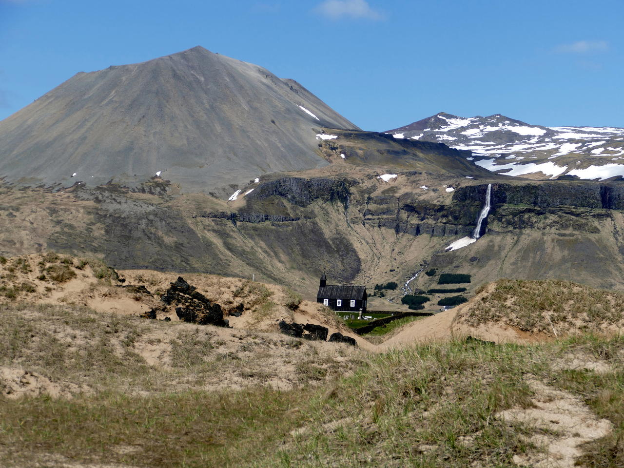 Snæfellsnes war wirklich sehr schön, mir persönlich aber fast schon zu touristisch. Nach einer ruhigen Nacht im Apartment mit kleiner Küchenzeile und Balkon, umgeben von Küstenseeschwalben und ihrem Geschrei, erwartete uns leider ein sehr windiger und regnerischer Tag. Wir entschlossen uns zu einer Autofahrt in den nördlichen Teil der Halbinsel.
