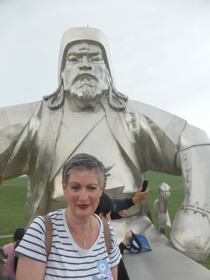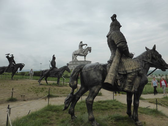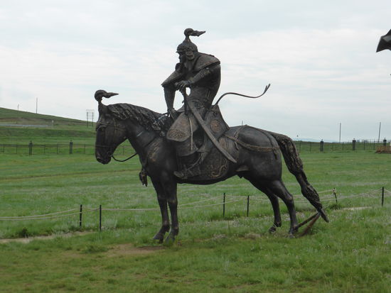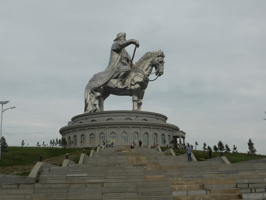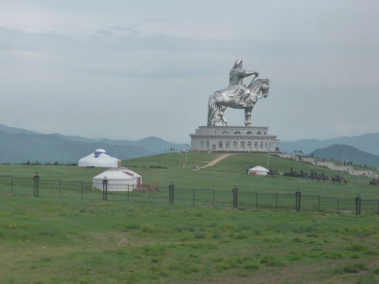 Unser erster Stop gilt einem Dachingis Khan Denkmal, einem eigenartigen Monument aus rostfreiem Stahl und Beton mit einer Höhe von ca. 40 m., auf dessen Brüstung man die Umgebung betrachten kann. Besagter Reiter soll in der Gegend seine Jugend verbracht und hier eine goldene Peitsche gefunden haben. Ihm zu Ehren wurde das Monument 2009 als größtes Reiterdenkmal der Welt mit Eintrag ins Guinness-Buch errichtet.