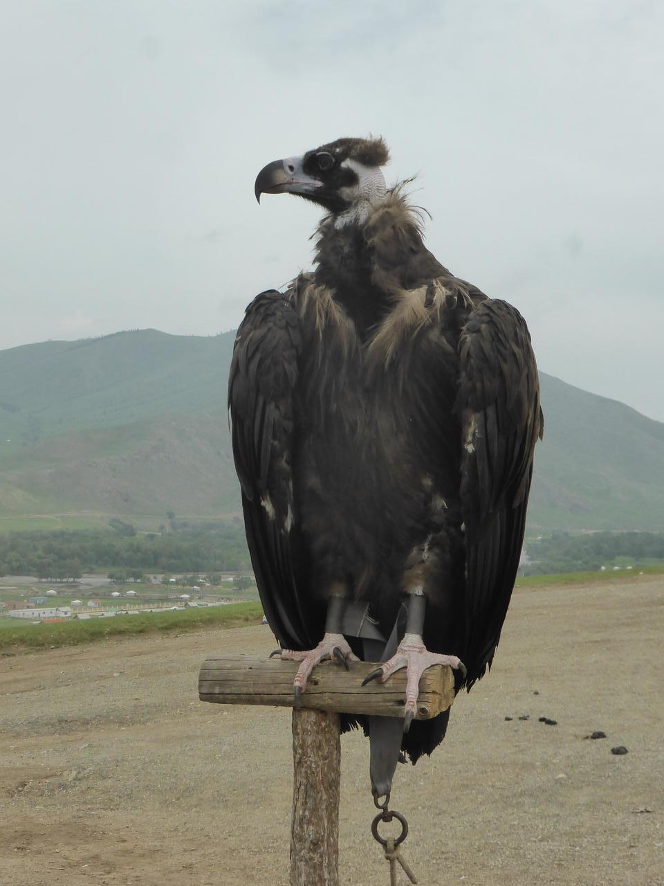 Für die Touristen stehen Mongolen dort und zeigen ihr Falknerhobby.