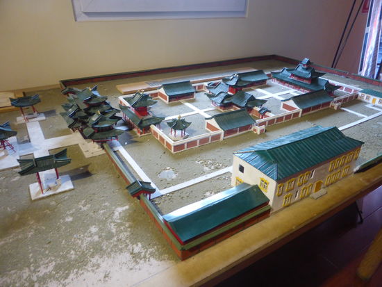 Der Komplex ist erheblich größer und erinnert mit drei Toren und zwei quadratischen Plätzen ein wenig an den Kaiserpalast in Peking.