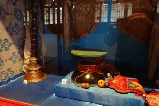 In den Gebäuden sind zahlreiche Exponate ausgestellt; unter ihnen Musikinstrumente und ein Set von 21 Tholas – weibliche Göttinnnen mit spezieller Hand- und Beinhaltung. (Alles hat hier symbolische Bedeutungen)