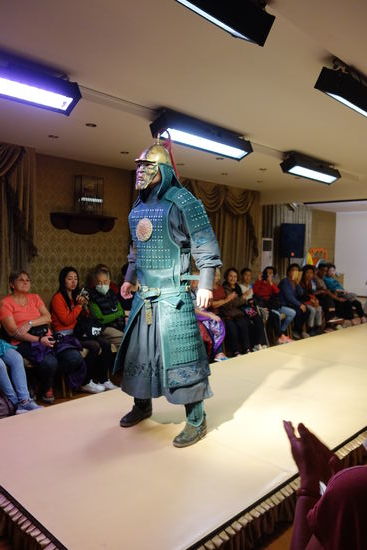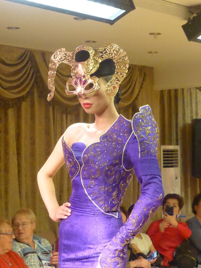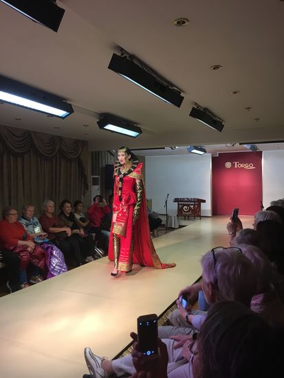 Ermattet ziehen wir über die Strasse in ein Geschäft zu einer Modenschau, unter der wir uns nichts vorstellen können (mal wieder eine Touristen- Verkaufsshow?) Nein! Die Schau präsentiert historische Gewänder im ersten Teil, unterbrochen von musikalischer Untermalung, um dann ‚haute-couture‘ vorzuführen. Eine Akrobatin unterbricht dann die Vorstellung nochmals, bevor Fantasiekostüme gezeigt werden. Das Publikum ist zufrieden. Als wir das Etablissement verlassen, regnet es – zum ersten Mal auf unserer Reise.