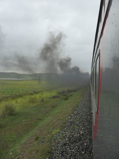 11.20 Uhr – 11.40 Uhr - Stop an einem unbekannten Bahnhof (536-541) zum Wasser fassen und evt. Lok wechseln – die Strecke ist noch nicht elektrifiziert. Ab und an stoßen die Dieselloks dunkelste Rauchschwaden aus, die am Fenster vorbeiziehen.