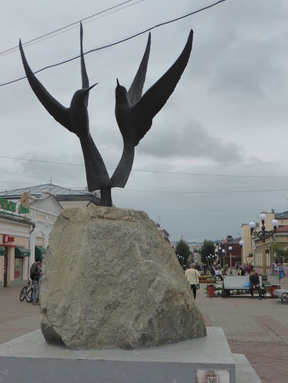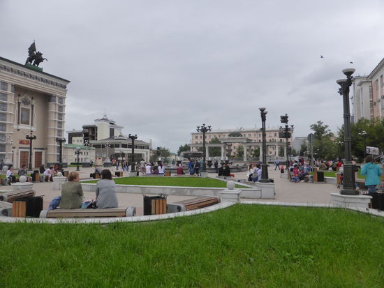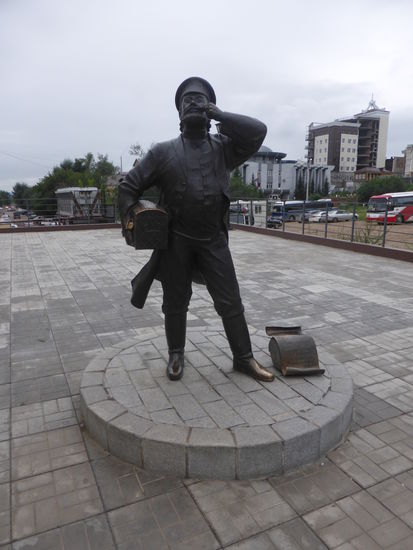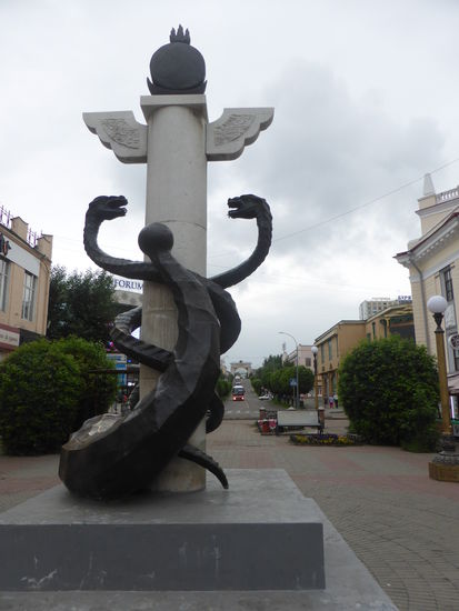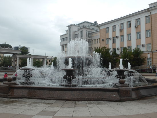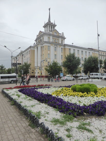 Der offizielle Stadtrundgang schließt sich an und deckt im Wesentlichen die Beschreibung des Reiseführers ab. Wir beginnen am großen Platz - sovietskaja - mit dem berühmten fünf Meter hohen Leninkopf aus Granit. Die Skulptur gehörte 1971 zum sovietischen Pavillon der Weltausstellung in Kanada. Überhaupt hat der Platz noch den Charme sovietischer Architektur, so steht direkt hinter Lenin das Regierungsgebäude der Republik Burjatien - eine eigenständige Republik in der Russischen Föderation - neben Kazan die einzige entlang der Transsib - und das Travellers House .