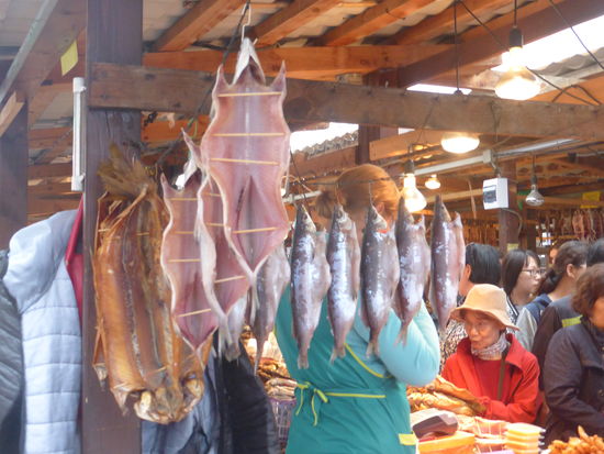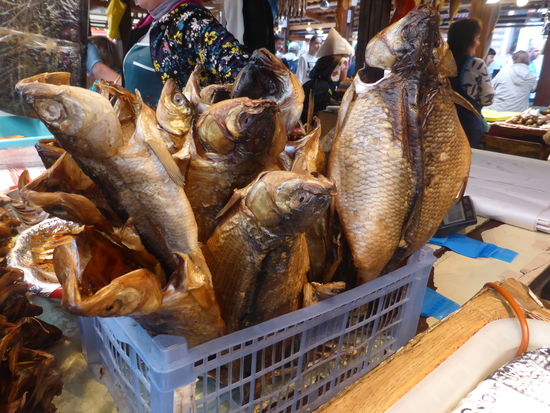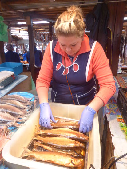 Dabei muß man sich bei ihrer Sprache erst einhören. Danach bringt sie uns zum Fischmarkt, dessen Besuch sich wirklich lohnt:
