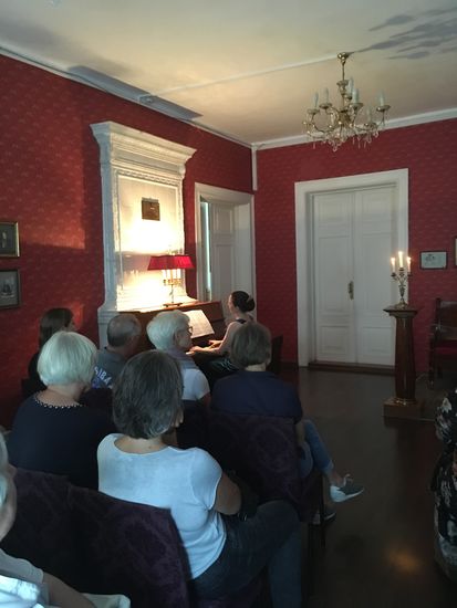 Nach Ende der Besichtigung gibt es ein klassisches Konzert im Musiksaal mit Flügel, Piano und Gesang.