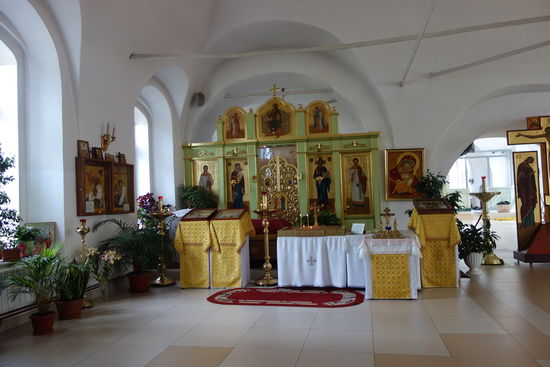 Vor dem Aufbruch zum Restaurant kann ich noch ein altes Holzhaustheater und eine einfachere Kirche anschauen.