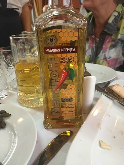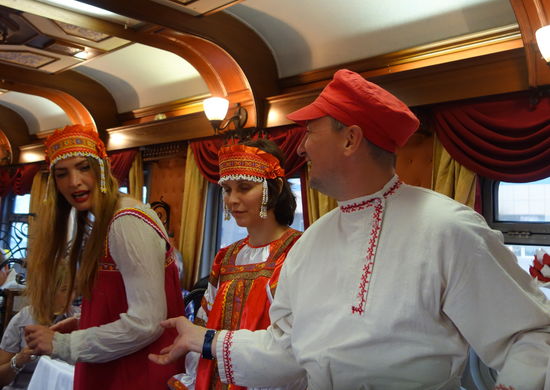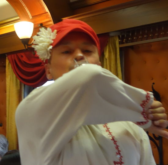 Das heutige Abendessen im Zug artet zu einem Amüsement aus, denn nach dem ersten Gang startet eine Wodkaprobe mit fünf unterschiedlichen ‚Gesöffs‘.