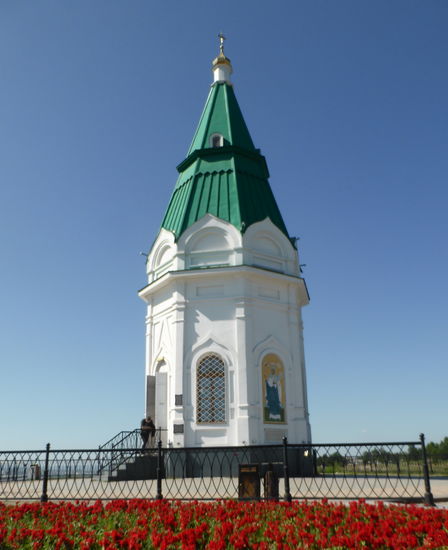 Nach der Mittagspause fahren wir dann immer noch nicht in die Innenstadt, sondern zu der Kapelle, die als Wahrzeichen der Stadt gilt und auch auf dem 10-Rubelschein abgebildet ist. Sie befindet sich wiederum in der Nähe mit erneutem Panoramablick. Das Unternehmen kostet weitere 45 min, die von einer soliden Stadtbesichtigung abgehen.