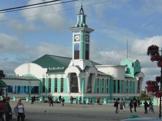 Natürlich befindet sich in der Hauptstadt Sibiriens das größte Bahnhofsgebäude entlang der Transsibirischen Eisenbahn. Von 1930 bis 1941erbaut könnte man das grün-weiße Bauwerk als Silhouette einer gigantischen Lokomotive ansehen.