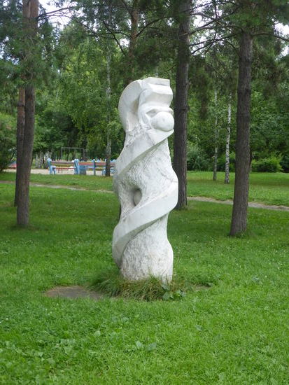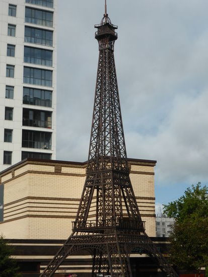 Anschließend laufen wir zu fünft durch den benachbarten Park und beobachten Einhörnchen. Hier können wir auch den Unterschied von Plattenbauten (behübscht oder unbehübscht) und Neubauten feststellen. Ein nachgebauter Eiffelturm kleinere Bauart gibt Anlaß zur Belustigung.