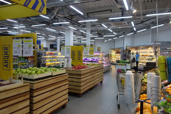 Da es inzwischen kurz vor 10.00 Uhr ist, besuchen wir noch einen Supermarkt: Unsere österreichische Mitreisende wird mit Mozartkugeln abgelichtet, wir amüsieren uns über Lind-Schokolade. Außerdem studieren wir die Preise von Kaviar. (7€ für 95 g)