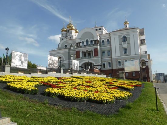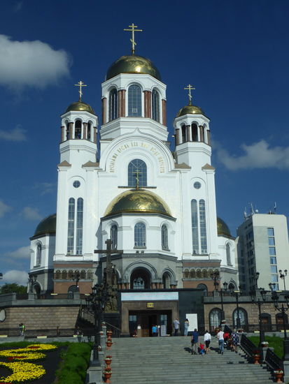 Die Kathedrale auf dem Blut (gelegentlich auf deutsch auch als Heilig-Blut-Kathedrale, Blutkirche oder Allerheiligen-Kirche bezeichnet) ist eine russisch-orthodoxe Kathedrale in Jekaterinburg. Sie wurde von 2002 bis 2003 an der Stelle errichtet, an der im Nachgang der Oktoberrevolution die Zarenfamilie 1918 ermordet wurde. ...