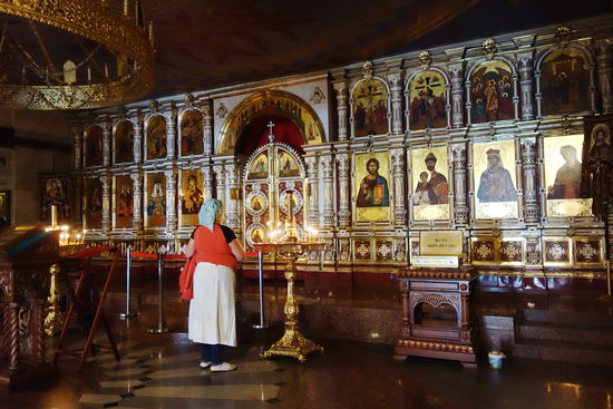 Die Rückfahrt geht schneller und wir schließen uns dem Vorschlag der Reiseleiterin an, ein Stück zu Fuß zu gehen. Doch zunächst besichtigen wir die zweistöckige Auferstehungskirche,