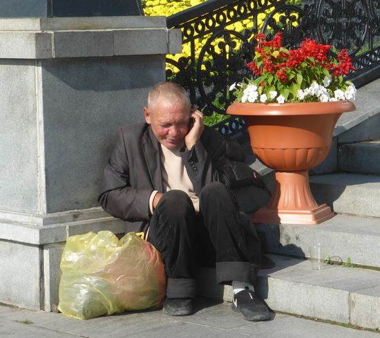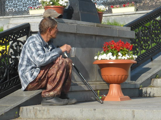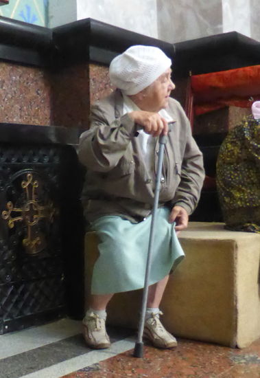 Um und in die Kirche verteilen sich zahlreiche ärmlich gekleidete Personen, die vereinzelt betteln.