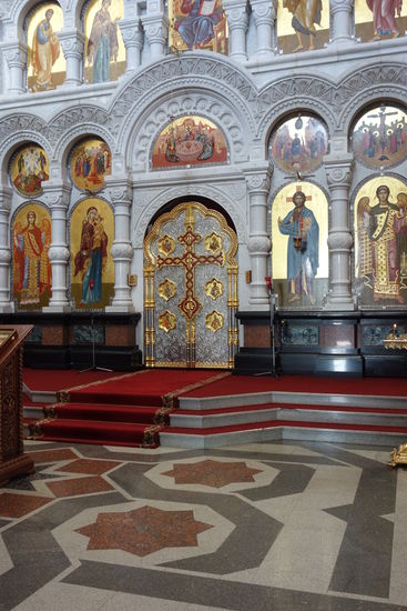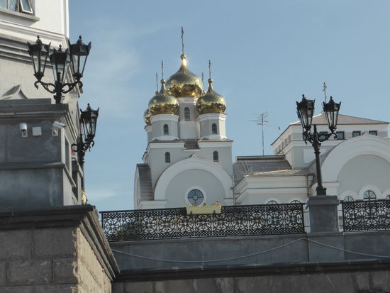 Die Kathedrale ist eingebettet in einen ganzen flankierenden Gebäudekomplex, der eine weitere Kirche und ein Museum über die letzte Zarenfamilie enthält.