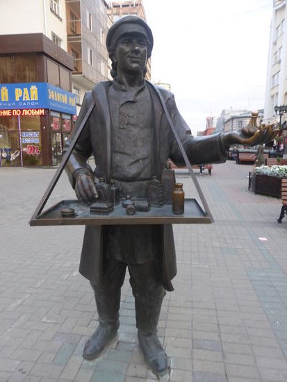 Wir verlassen das Kaufhaus und befinden uns in der ul. Vaynera - eine der neuen Fußgängerzonen Rußlands - sie ist gespickt mit ausgesprochen schönen Sklupturen.