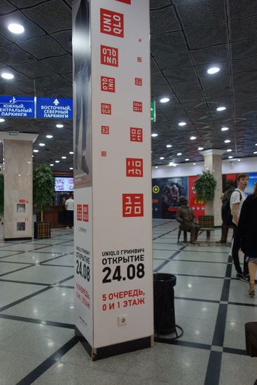 In einem weiteren Kaufhaus entdeckt meine Frau die Reklame von 'Uni Clo', einer japanischen Bekleidungsmarke, der sie schon in Kyoto 'erlegen' war. Wir suchen und suchen, merken aber sehr spät, dass eine Säule nur die Eröffnung am Ende des Monats ankündigt.