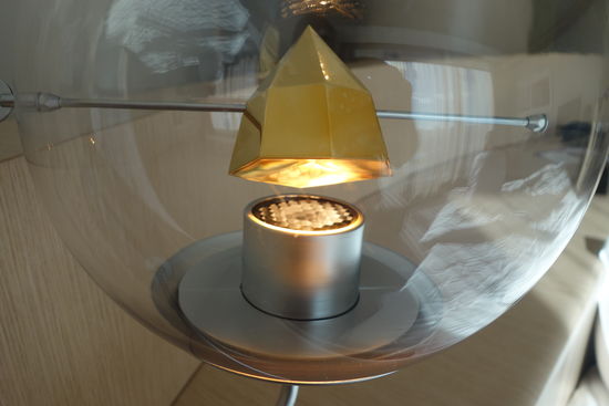 Die Lampen am Bett nötigen zu einer näheren Betrachtung: ein drehbares Prisma läßt vielfältige Effekte zu.