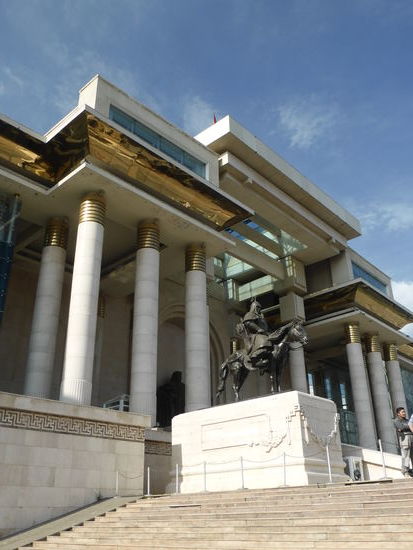 Ulaanbaatar ist eine Stadt zwischen Moderne und Tradition. Zentrum der Stadt ist der Süchbaatar-Platz. Die markantesten Bauten auf diesem großräumigen Platz sind das Parlamentsgebäude, das Rathaus der Stadt, das Haus der Kultur, die Staatsoper, die Mongolische Börse sowie einige moderne Hochhäuser mit Hotels, Restaurants und Geschäften. Vor dem Eingang des Parlamentsgebäudes befinden sich große Skulpturen: in der Mitte Dschingis Khan, rechts und links sein Sohn und Nachfolger Ögedei Khan und sein Enkel Kublai Khan, einst Kaiser von China.