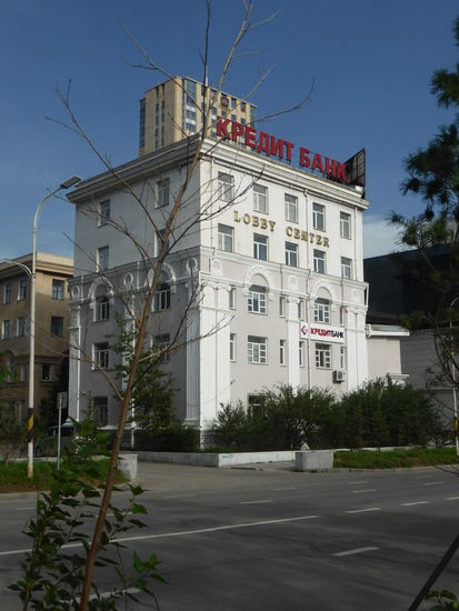 Wir machen einen größeren Kreis um den Platz und finden noch eine Reihe interessanter Gebäude der typisch kommunistischen Bauart aus der Sovjetzeit.