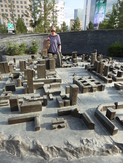 Im Park (überall in der Mongolei wird der Rasen wohl wegen des kurzen Sommers nicht gemäht) nahe des Hotels finden wir ein sehr schönes Modell der Innenstadt von Ulaanbaatar - und ein hochmodernes Einkaufszentrum