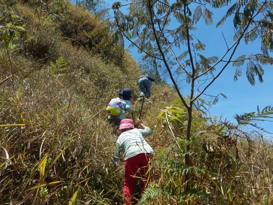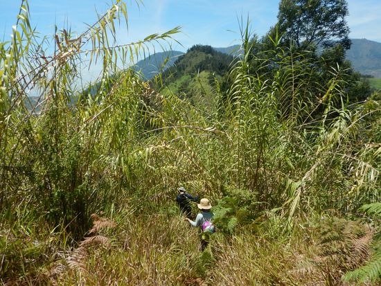 Schnell sind einige Höhenmeter geschafft. Der Weg wird immer schmaler und zwischen dem hohen Bambus und Gestrüpp manchmal unauffindbar.