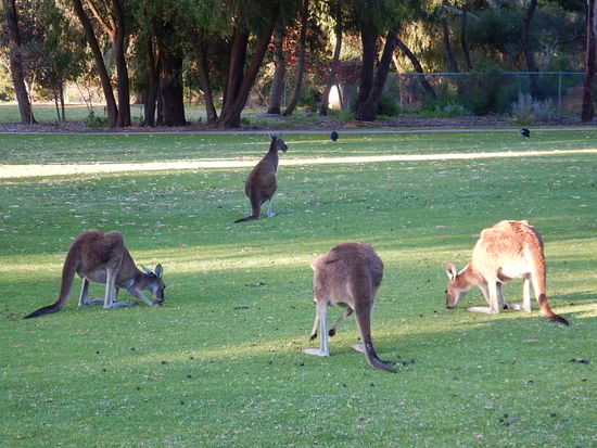 Die Känguruhs sind sich hier an die Menschen gewöhnt. Wir haben viele Beutel mit Jungen darin gesehen, zum Teil sind diese so gross, dass die Füsse raus schauen.