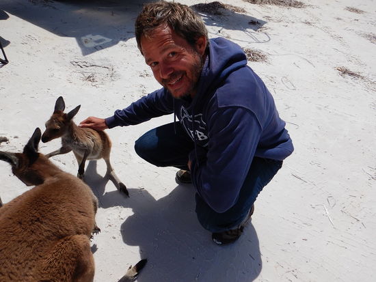 Nach zwei Tagen wechseln wir an die Lucky Bay. Hier freuen wir uns über die Kängurus am Strand, die man sogar streicheln kann. Der weisse Sand ist hier so fein, dass er unter den Füssen knirscht.