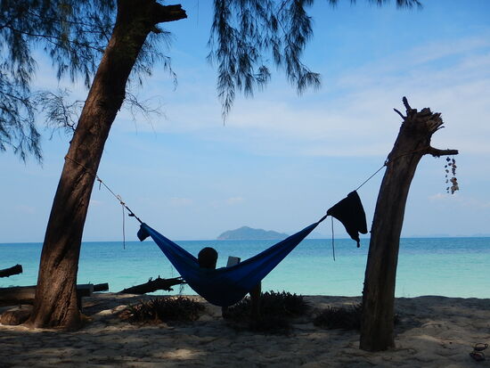 Direkt hinter dem Strand wachsen Bäume für unsere Hängematten, denn wer Schegg kennt, der weiss, ohne Hängematte keine Erholung. Und so lassen wir es uns gut gehen, relaxen, schnorcheln oder lesen.