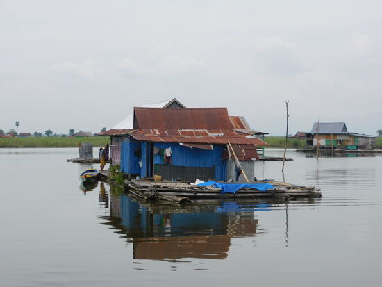 Im schmalen Boot tuckern wir durch schwimmende Pflanzen und sehen viele Fischer, Wasservögel und Nester. Die schönen Blumen riechen wunderbar und nach einiger Zeit kommen wir bei den schwimmenden Häusern an. Jedes Haus ist an einem grossen Pfosten befestigt und schwimmt um diesen herum. Fische werden luftgetrocknet und Vögel schiessen vor unseren Augen ins Wasser um Fische zu fangen.