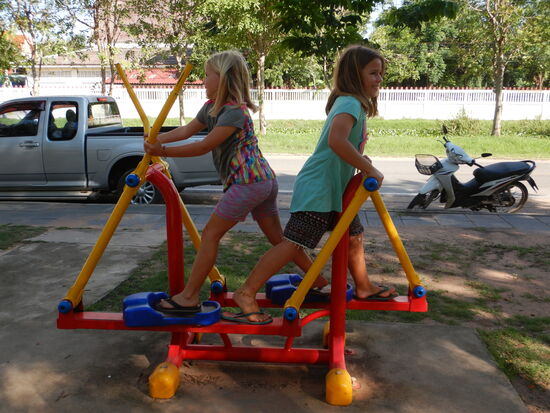 Auf dem Rückweg toben wir uns noch auf den Fitnessgeräten aus.