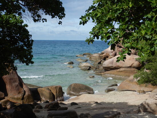 Zum Glück liegt unser Bungalow nicht am Hauptstrand, sondern abseits und in einer schönen Bucht.